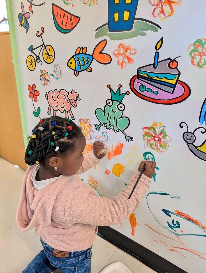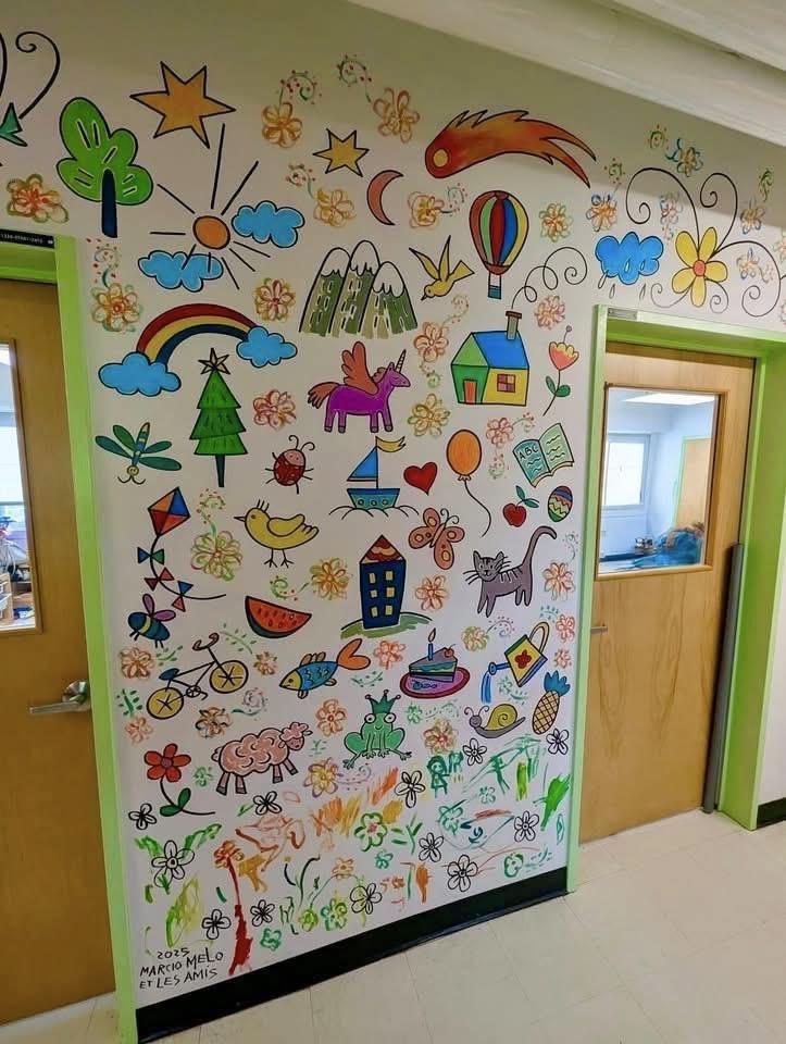 Previous Next October 16, 2025 Montreal Un monde à découvrir Mural Painting Project at the CPE Le jardin des rêves Marcio Melo and children