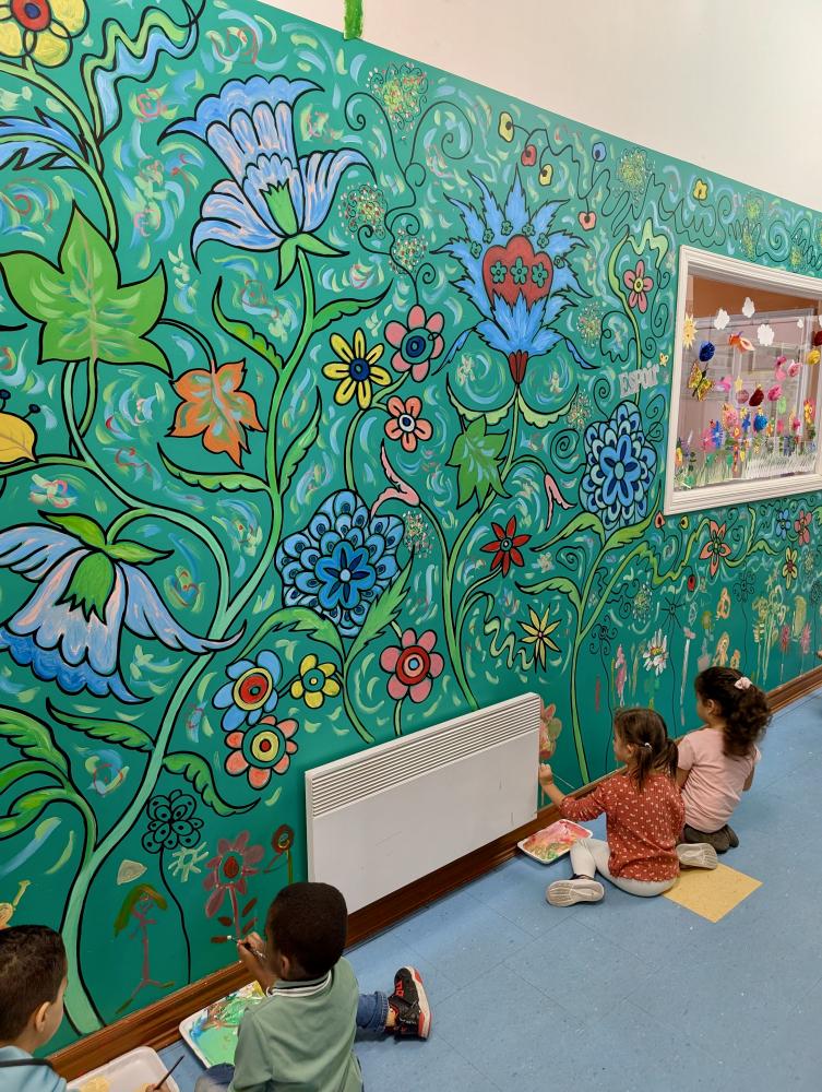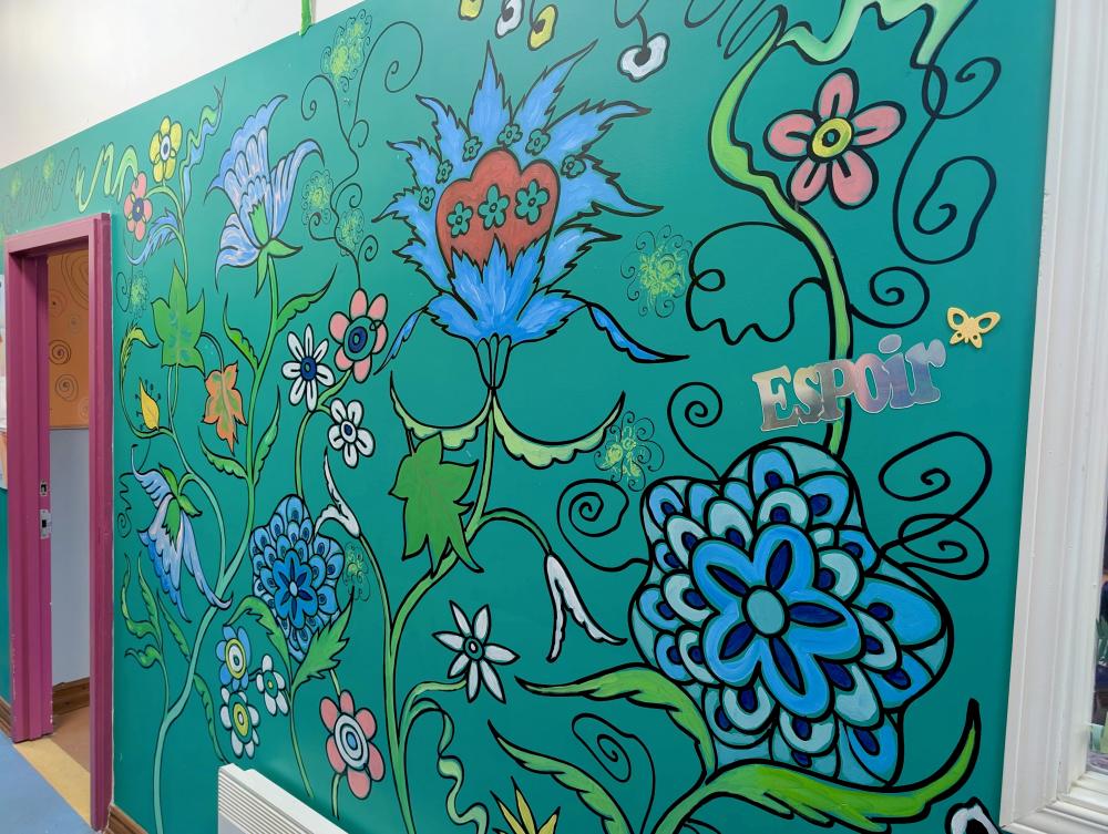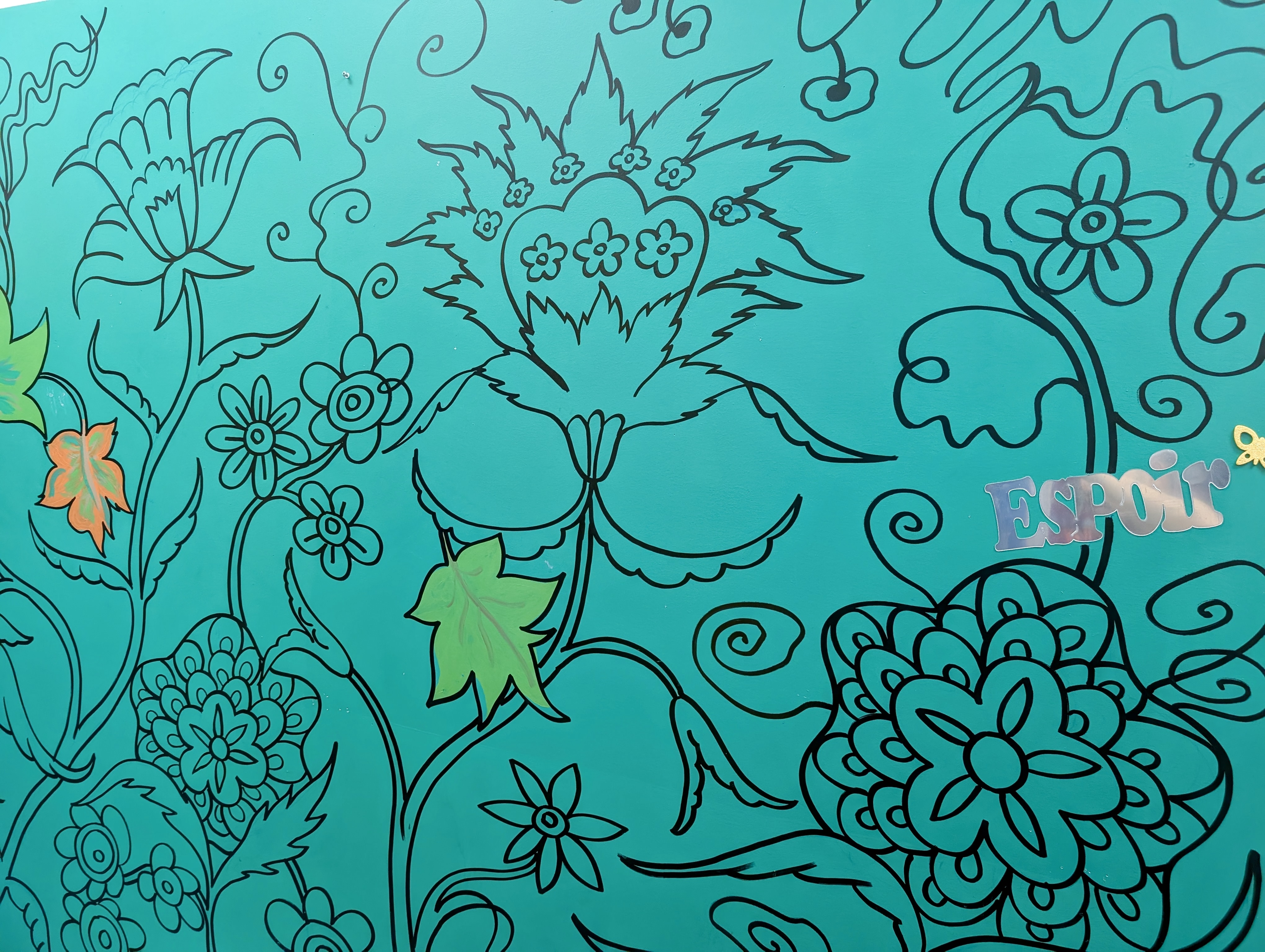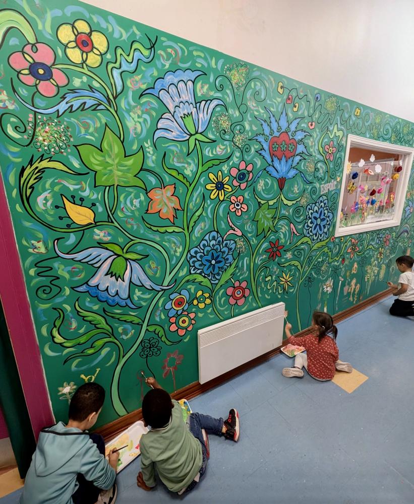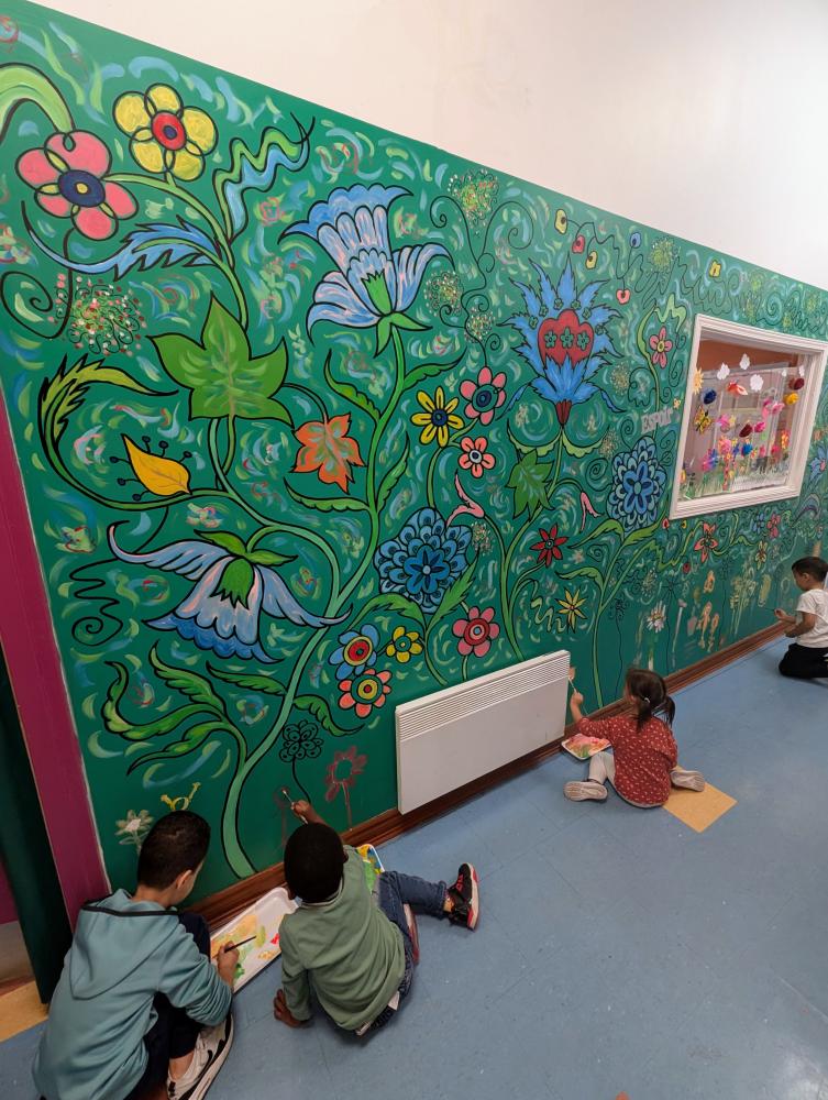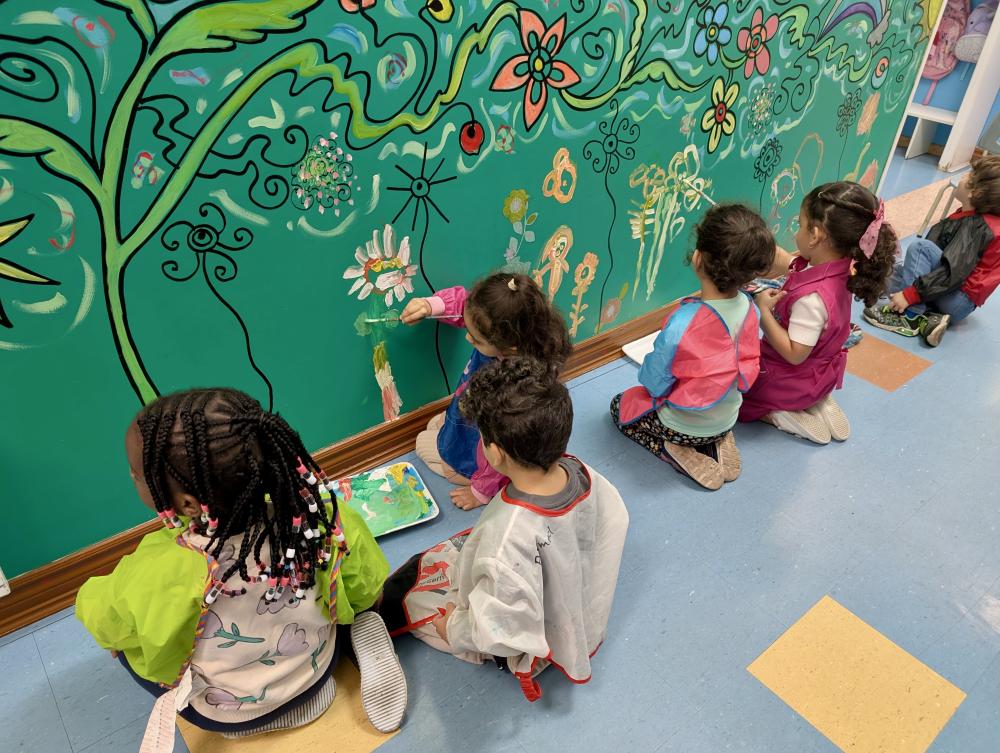 Previous Next September 24, 2025 Montreal / Quebec Un jardin pour la Paix Mural Painting Project at the daycare Le monde des merveilles Marcio Melo and children