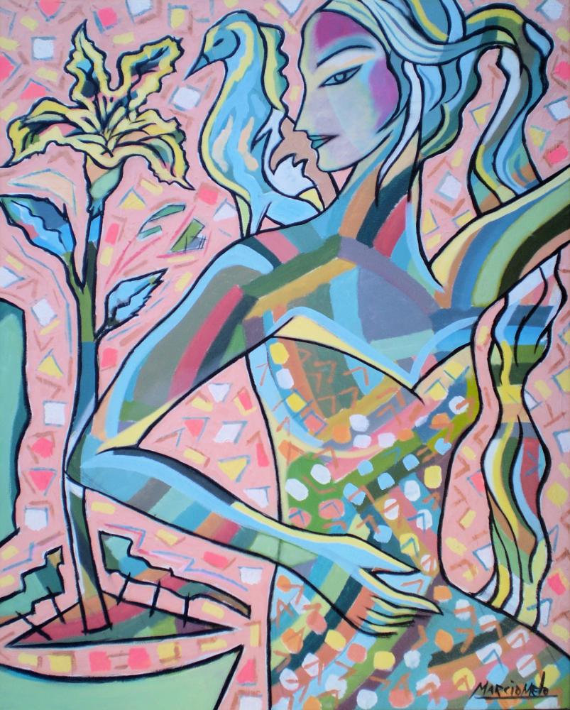Girl, Bird, YellowFlower