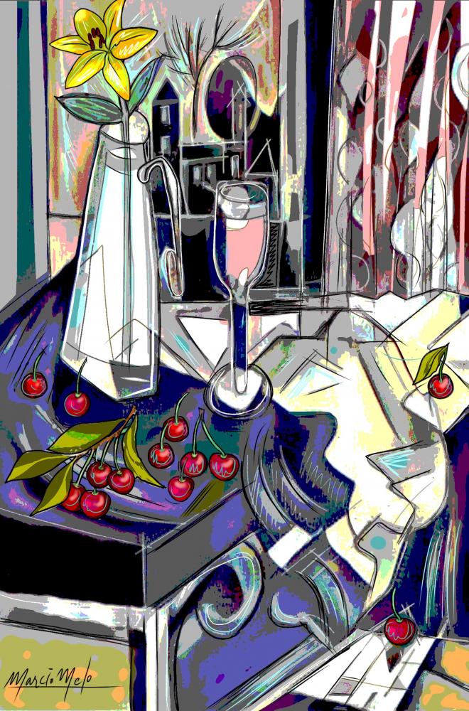 Yellow lily and cherries
