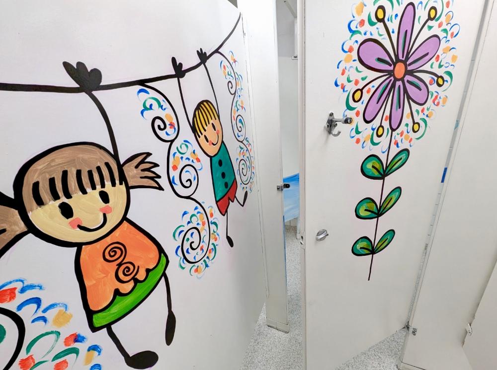 Previous Next 25 mars 2026 Montreal Cabines de salle de bain Projet de peinture murale au CPE Maïmonide Marcio Melo et les enfants