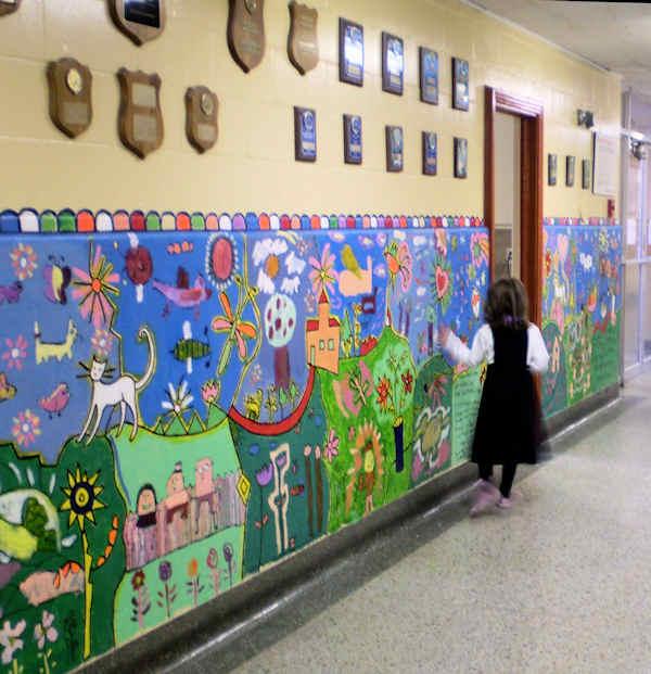 Le thème de la fresque était «Notre Jardin / Notre Jardin» .Les étudiants ont dessiné un grand nombre d'animaux, de fleurs et de plantes à la fois de la réalité ou de leur mondes imaginaires.