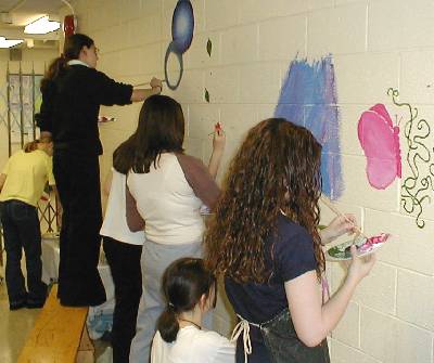 L'atelier planifie et exécute une peinture monumentale de collaboration (peinture murale) pendant trois jours. L'échelle d'une peinture murale favorise une grande liberté d'expression et d'accomplissement artistique dans le cadre de la coopération et de compromis.
