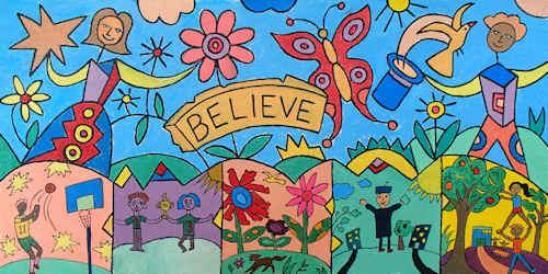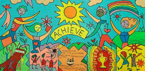 This mural is highly visible on a outside wall of the Boys and Girls Club of Ottawa.