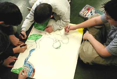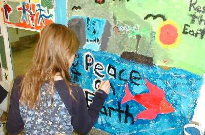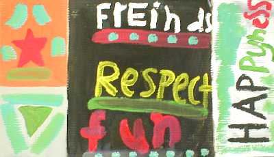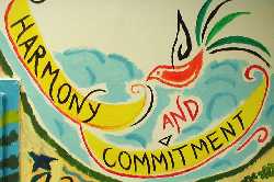 The principal, Joan Grey, suggested the word "Commitment". I suggested the word "Harmony". We both thought these were key words to a successful art project.