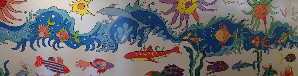 We chose the theme "Fish of the Sea" and the students really succceded in infusing their drawings with personal touches and creative interpretation. The result is a mural where the adjective imaginative would be a great word to describe it.
