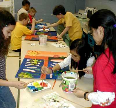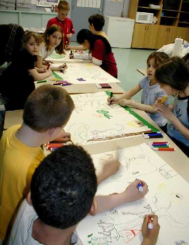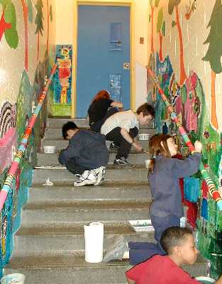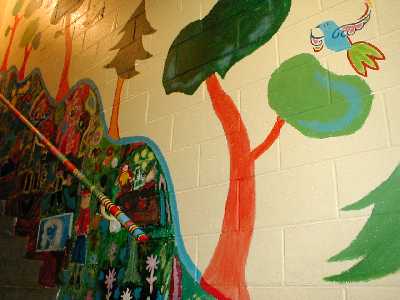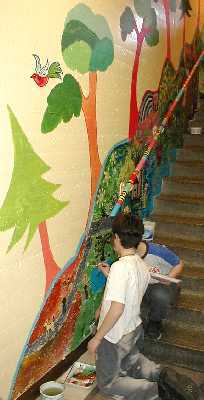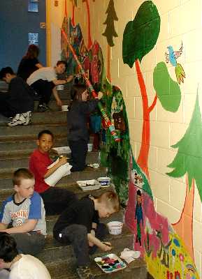 The workshop plans and executes a monumental collaborative painting (mural) over three days. The scale of a mural fosters great freedom of expression and artistic accomplishment within the context of cooperation and compromise.