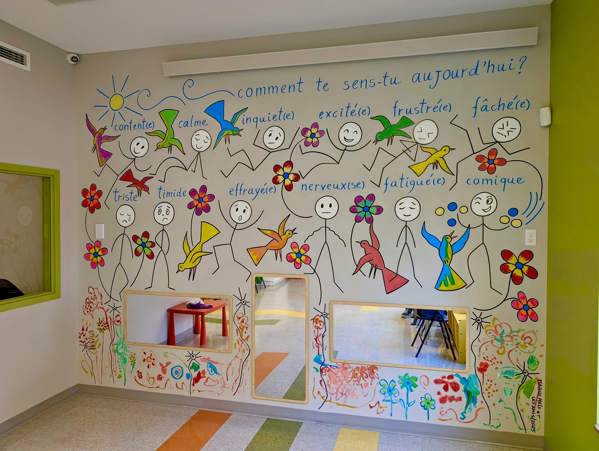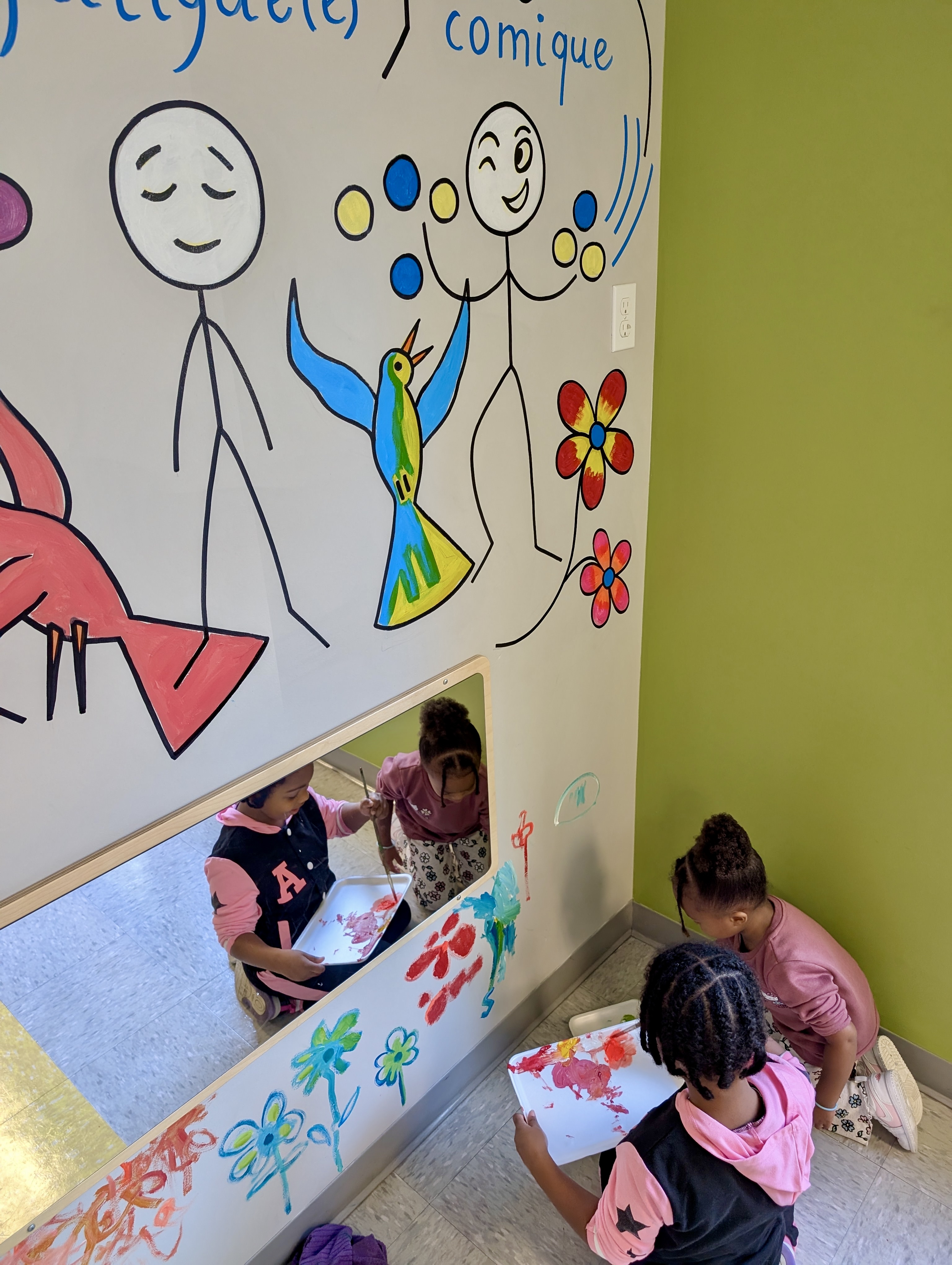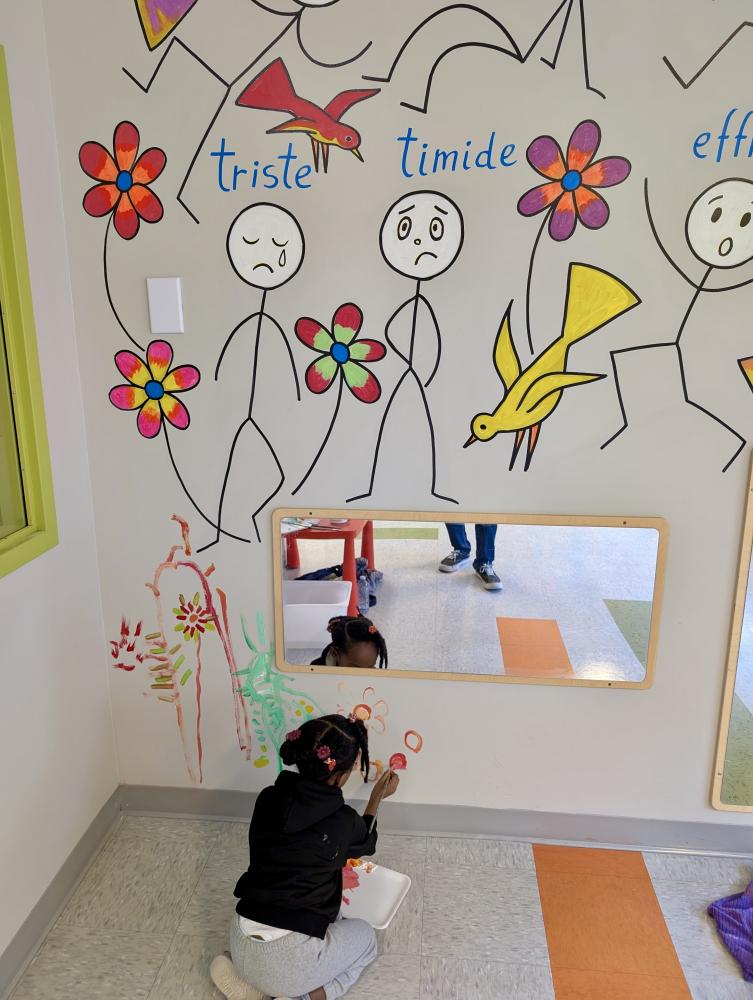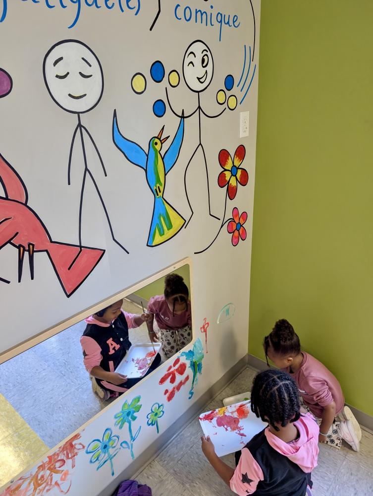 Previous Next October 29, 2025 Montreal Connais-toi toi-même Mural Painting Project at the daycare l'Alpha à L'Ômega Marcio Melo and children