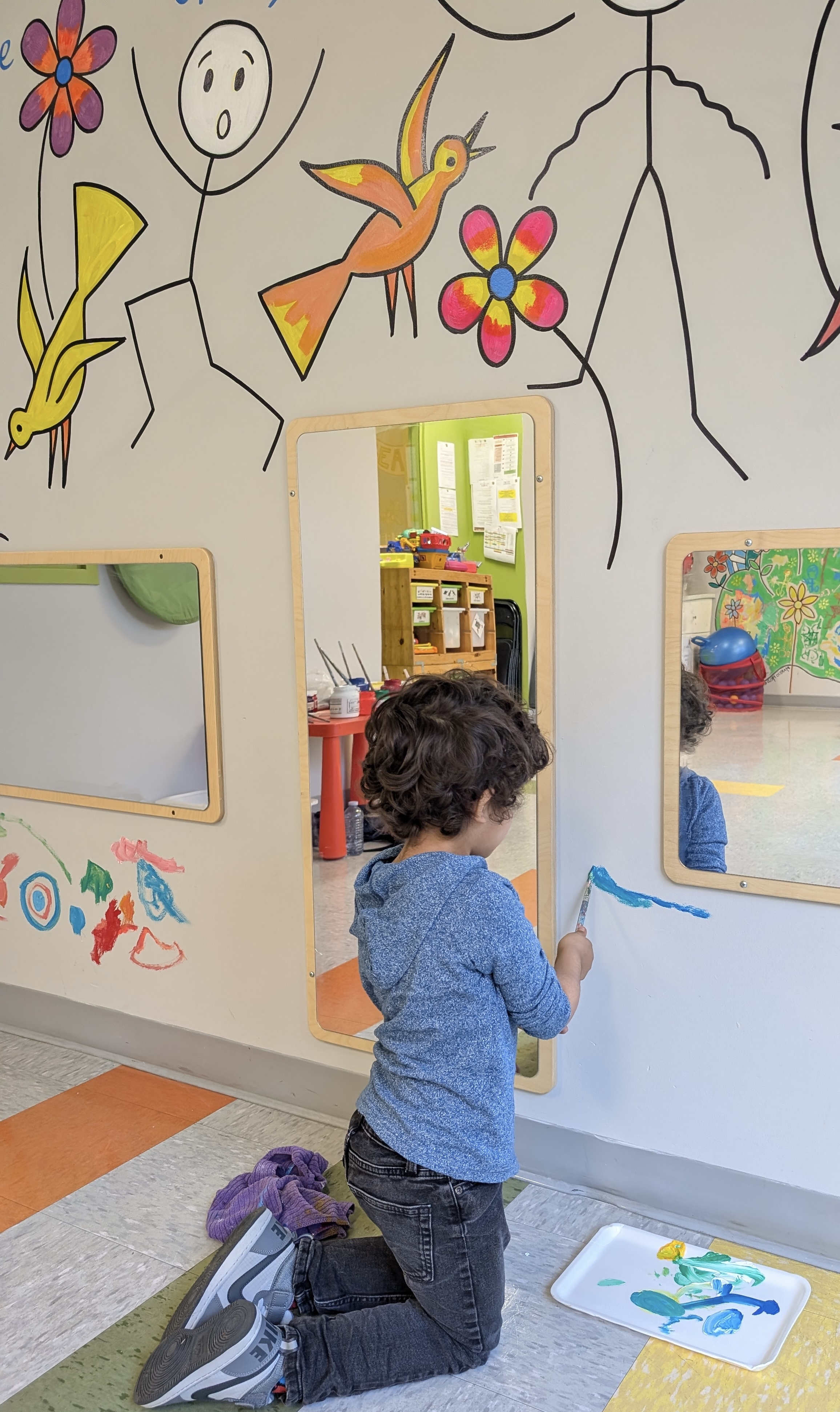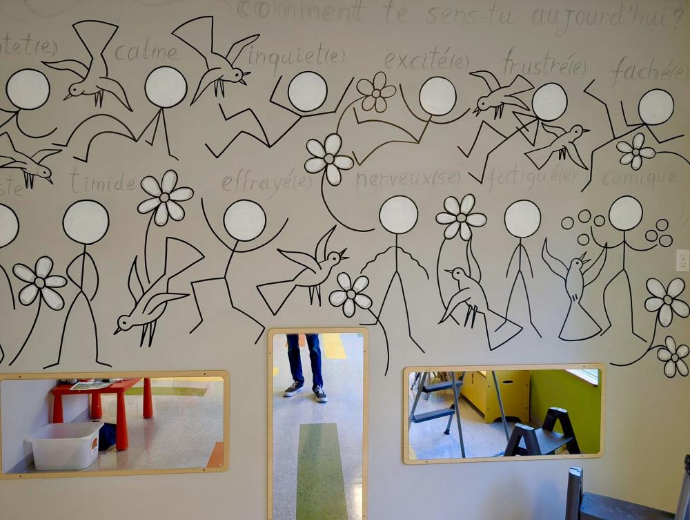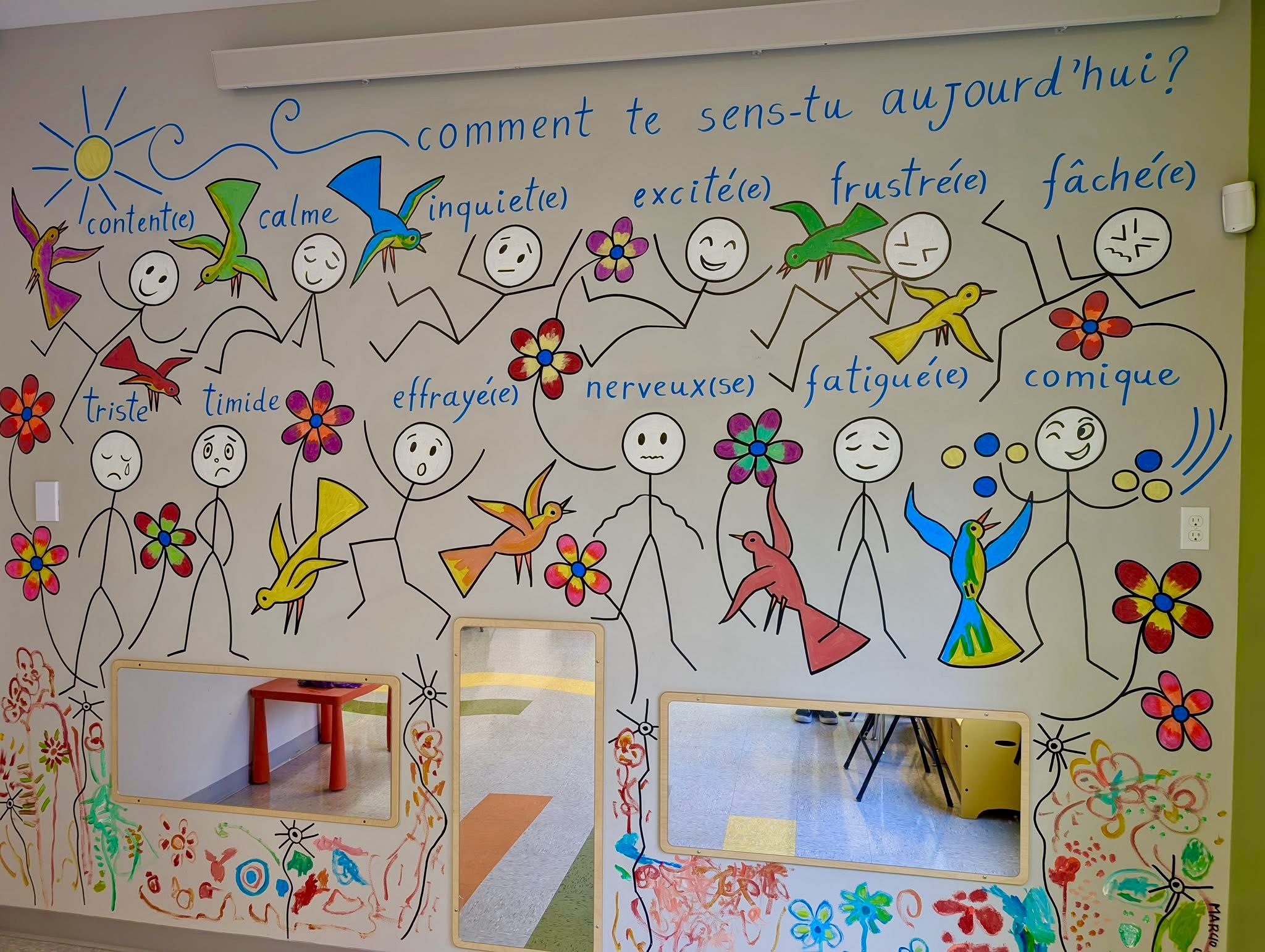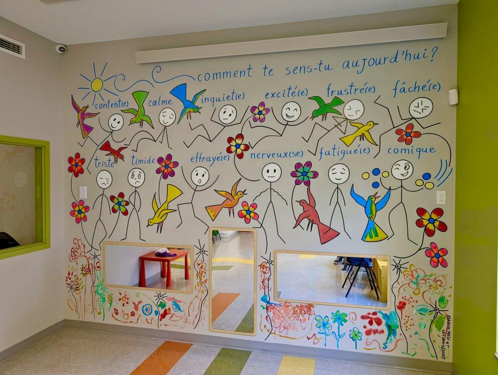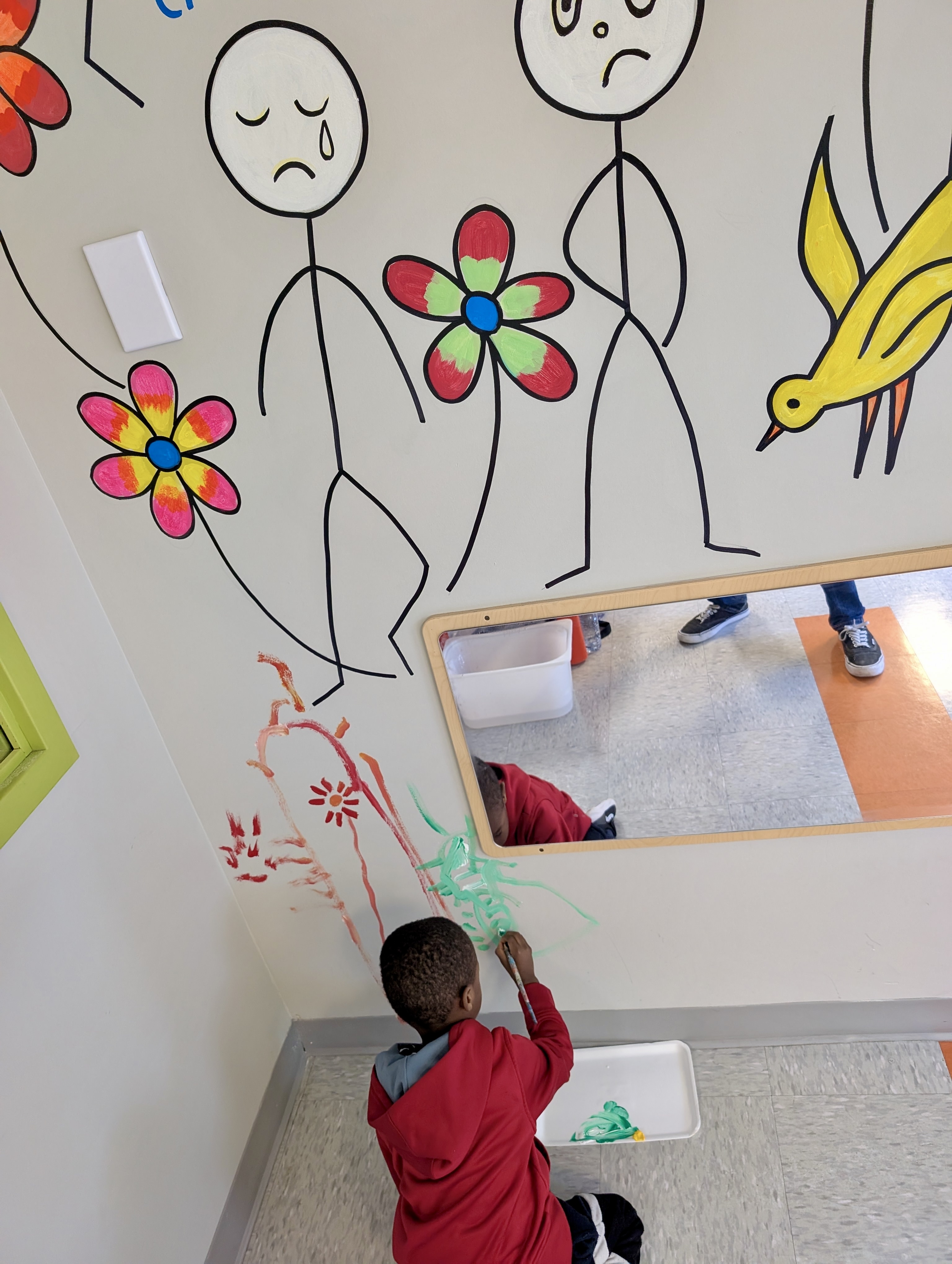 Previous Next October 29, 2025 Montreal Connais-toi toi-même Mural Painting Project at the daycare l'Alpha à L'Ômega Marcio Melo and children