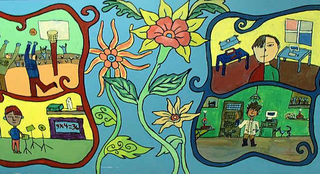On March 12, 13 and 14th I worked on a mural project at Parkdale School in Montreal. I worked in collaboration with grade 6 teacher Karolyn Liverman.