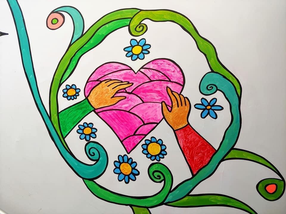 Previous Next February 14, 2020 Montréal, Québec Gentillesse et empathie Mural painting project at Royal Vale School Marcio Melo and students