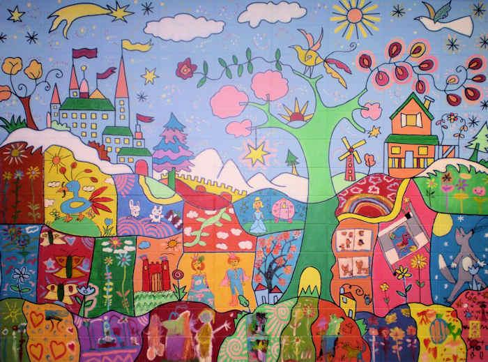 The mural is therefore an homage to castles, princesses, animals and the world of dreaming and imagination.