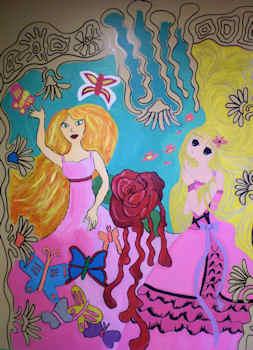 I have been to Spain many times and am familiar with the work of both artists, nevertheless I have to confess I was a bit nervous with the task of providing a framework where drawings made by the students would be placed. The first series of drawings that appear in the video were made by me in a attempt to marry both styles and imageries into one. Later on, when I was drawing on the wall, I finally let go and surrendered to a more spontaneous way of drawing, collaborating with the art teacher who would show me images and discuss the possibilities of using them.
